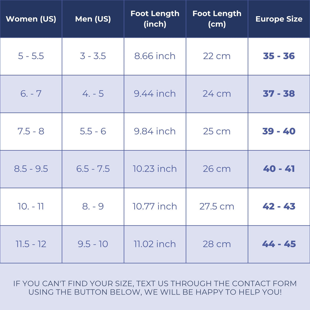 | Foot Length | Women (US) | Men (US) | Europe Size |